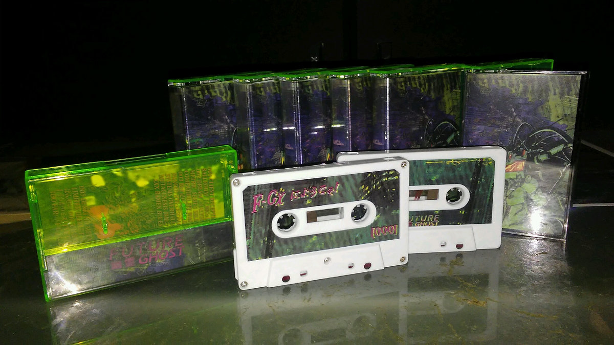 This prototype release is the first installment of the F-Gχにようこそ! series, cataloging life in the digital slums of 3095. Synthetic white mastering grade cobalt high bias c23 in flourescent clear cases with full colour labels and double sided j-card printed on high quality matte 110# paper
